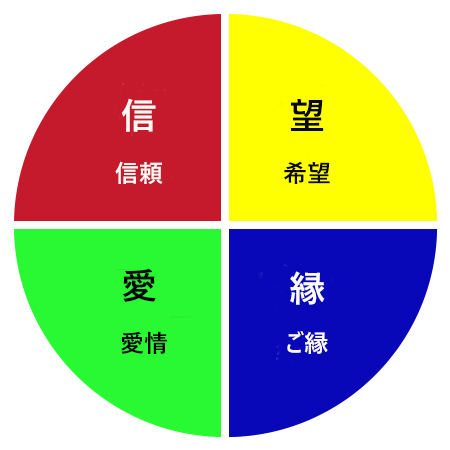 信=「信頼」 望=「希望」 愛=「愛情」 縁=「ご縁」
